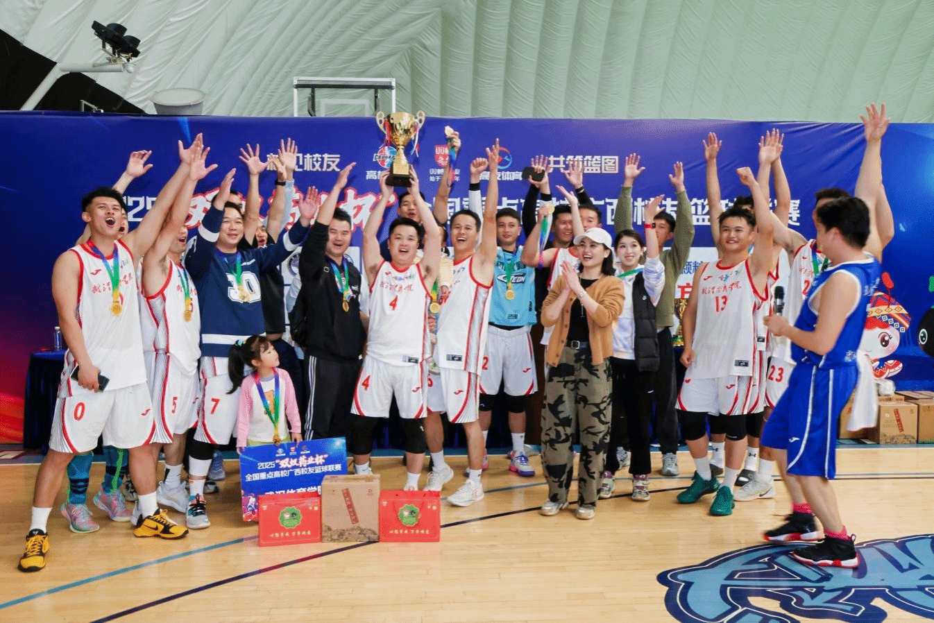北京时间11月29日,2025“双蚁药业杯”第七届全国重点高校广西校友篮球联赛圆满收官。在决赛中,武汉体育学院广西校友队以73:69的比分逆转战胜中南民族大学广西校友队,勇夺本届赛事冠军,为母校再添荣光。